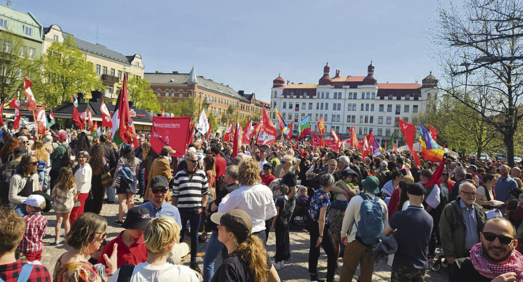 1 MAJ | Första maj sken solen över nästan hela landet och 1-majdemonstrationerna var på de flesta håll större än vanligt. Om detta berodde på meteorologiskt eller politiskt högtryck låter vi vara osagt. Tusentals nummer av Internationalen spreds på ett tjugotal orter med parollen “Hellre röd än död” – En syftning på krigets och klimatförändringarnas fasor och vad vi anser är det nödvändiga alternativet.