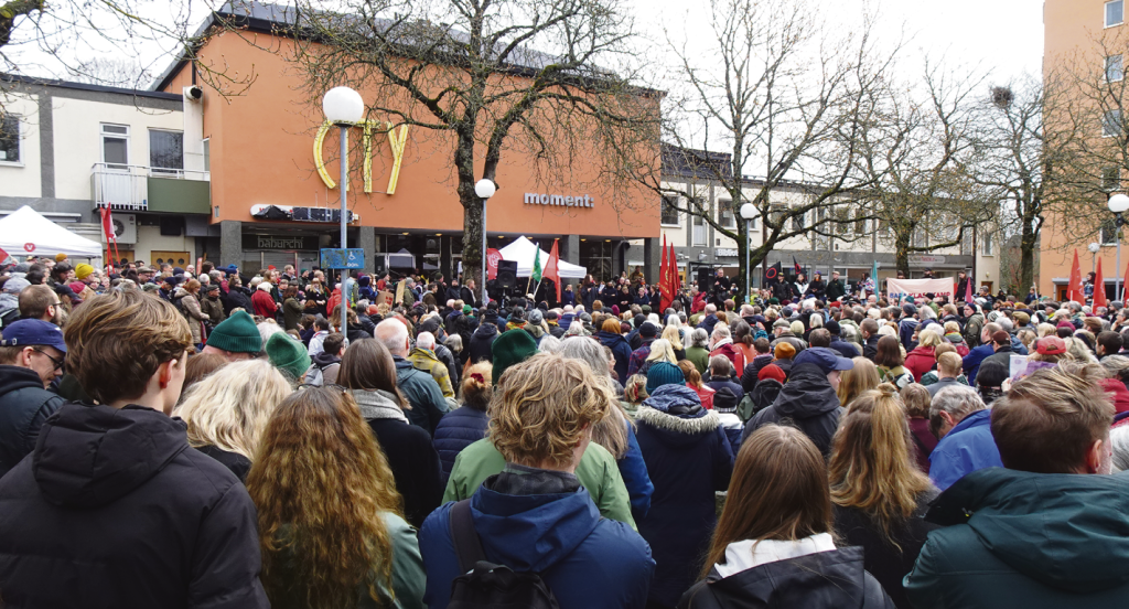 PÅ PLATS | Mer än 2000 personer samlades på lördagen den 27 april i Gubbgängen för att visa sitt stöd efter onsdagens attack. då maskerade högerextremister stormade en föreläsning och attackerade mötesdeltagarna med knytnävsslag och rökgranater.