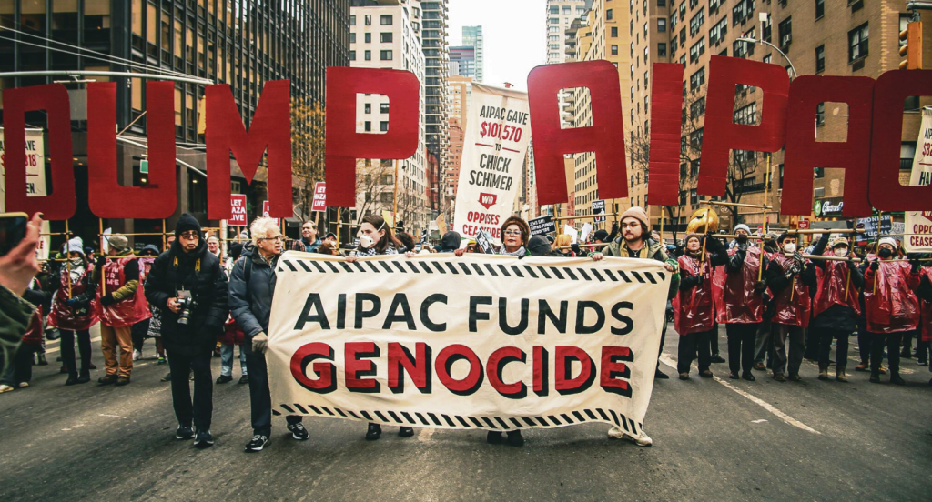 UTRIKES | Häromveckan stängde unga judiska aktivister ned de demokratiska senatorerna Chuck Sumers och Kristen Gillibrands kontor i New York under anklagelsen att de tillsammans tagit emot 400 000 dollar från AIPAC, Israel Public Affairs Committee. AIPAC har, enligt JVP, lagt ner stora summor för att förmå politiker att säga nej till vapenvila.