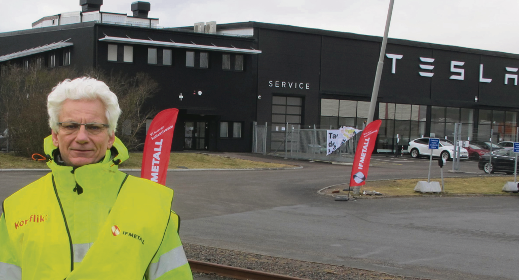 PÅ PLATS | Efter över fyra månader står fortfarande medlemmar i IF Metall utanför Teslas verkstäder landet runt. Internationalens Lars Henriksson, pensionerad metallare, berättar från ett blåsigt vaktpass en fredag i februari och om den senaste utvecklingen i strejken.