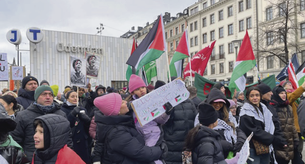 KRÖNIKA | Lördag på Odenplan i Stockholm; många hundra människor har samlats för att protestera mot den israeliska regeringens krig mot palestinierna i Gaza. Det talas om risk för ett regelrätt folkmord, fler än 28 000 civila har redan dött.