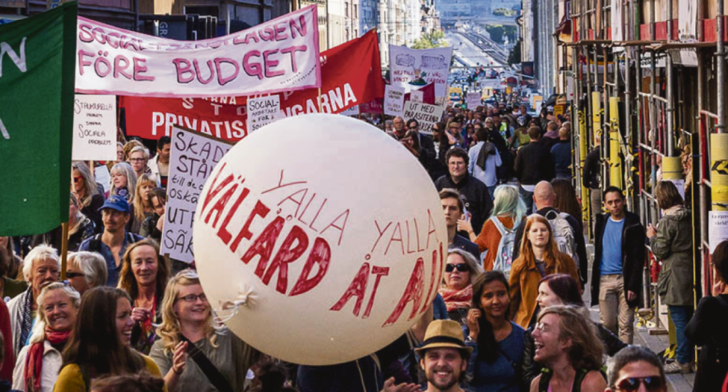 För vänstern står uppgiften att stötta och utveckla protesterna mot Tidöregeringens statliga utsvältningspolitik även där så kallat ”röd-gröna” styr i kommuner och regioner. Det är i själva rörelsen underifrån ett nytt självförtroende kan växa och en vägg av motstånd skapas mot högerstyre och reaktion. I det motståndet kan vägar ut ur fossilkapitalismens återvändsgränder banas och en starkare folklig, humanistisk och socialistisk vänster samlas till politisk styrka.