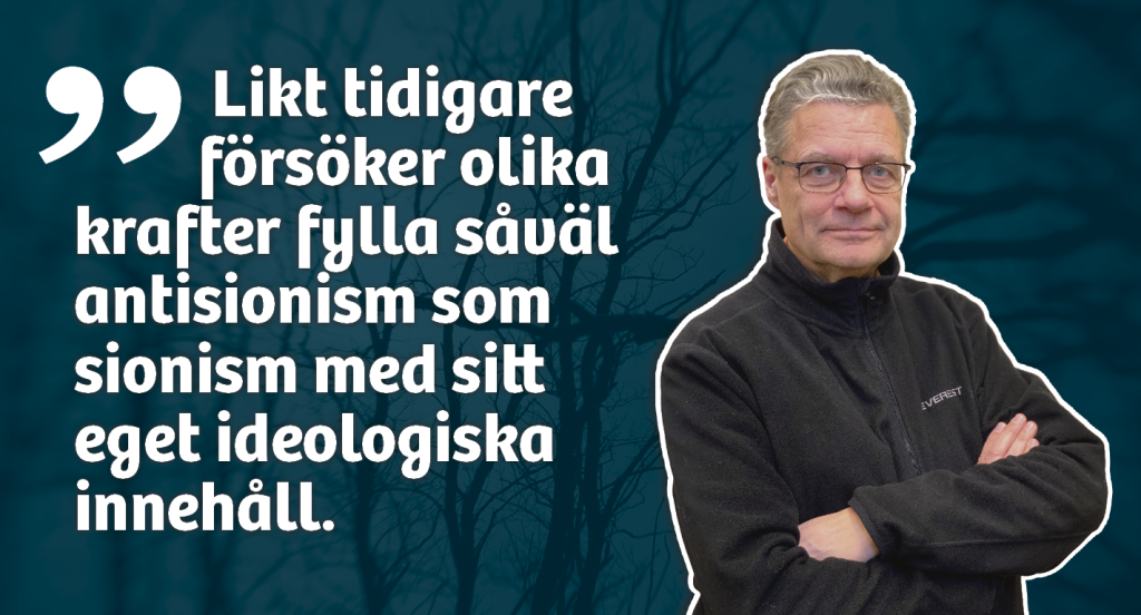 Idag är vi många som överväldigas av sörjan, inte minst efter den 7 oktober med Hamas massaker på israeliska civila och de förödande israeliska massmorden på Gazas civilbefolkning liksom terrorn från bosättare och israeliska militär på Västbanken och andra håll. Men även av reaktionerna från västregeringar med totalt stöd, också militärt, för Israel och med brännmärkningen av antisionism som självklart lika med antisemitism.