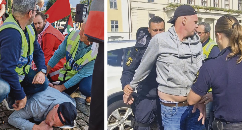 Solidariteten med det palestinska folket lämnar högern ingen ro. Välkammade ledarskribenter och yviga högertroll gör sitt bästa för att blanda bort korten och utmåla dem som protesterar mot den israeliska krigsmaktens övergrepp som terrorister och fiender till demokratin. I helgen gick en av dem över gränsen och togs om hand av polisen. Internationalen har pratat med Kristoffer Lundberg som ger sin syn av vad som hände.